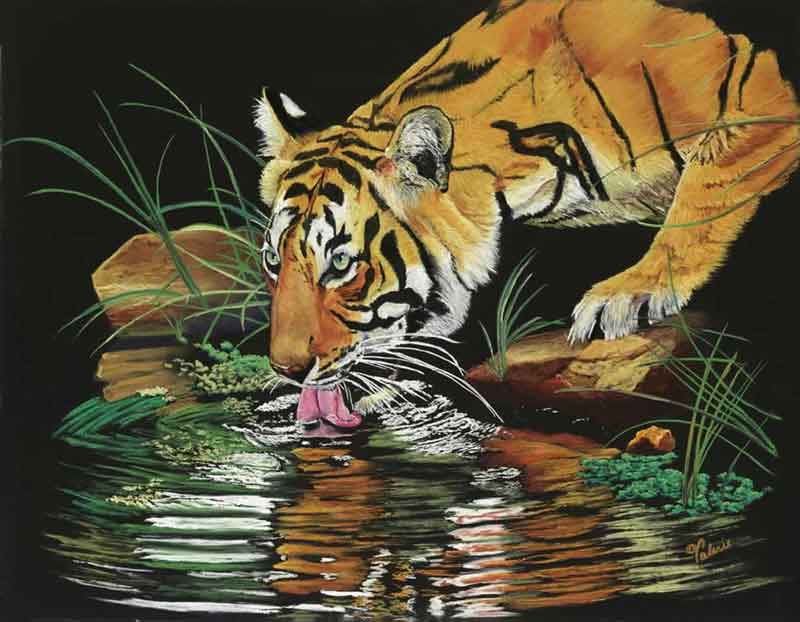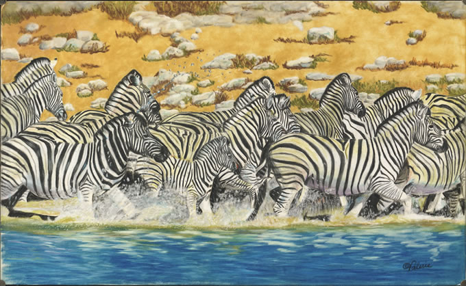 Wild animals are a fascination to most people due to the strength, grace and energy that we all wish to possess in ourselves. Many wild animal's very existence is being threatened by humans. I donate a percentage to causes that help protect them with the sales of these paintings.